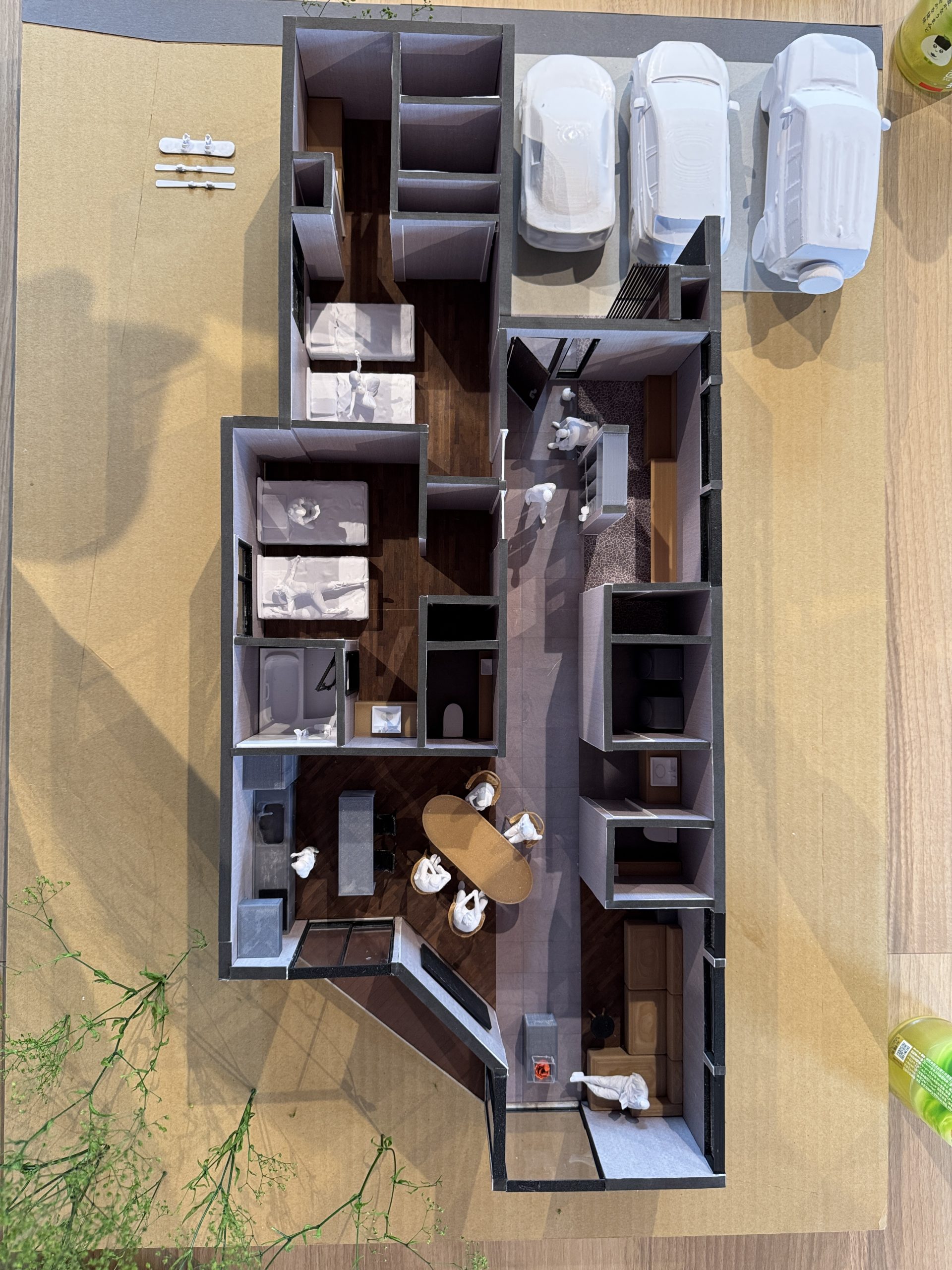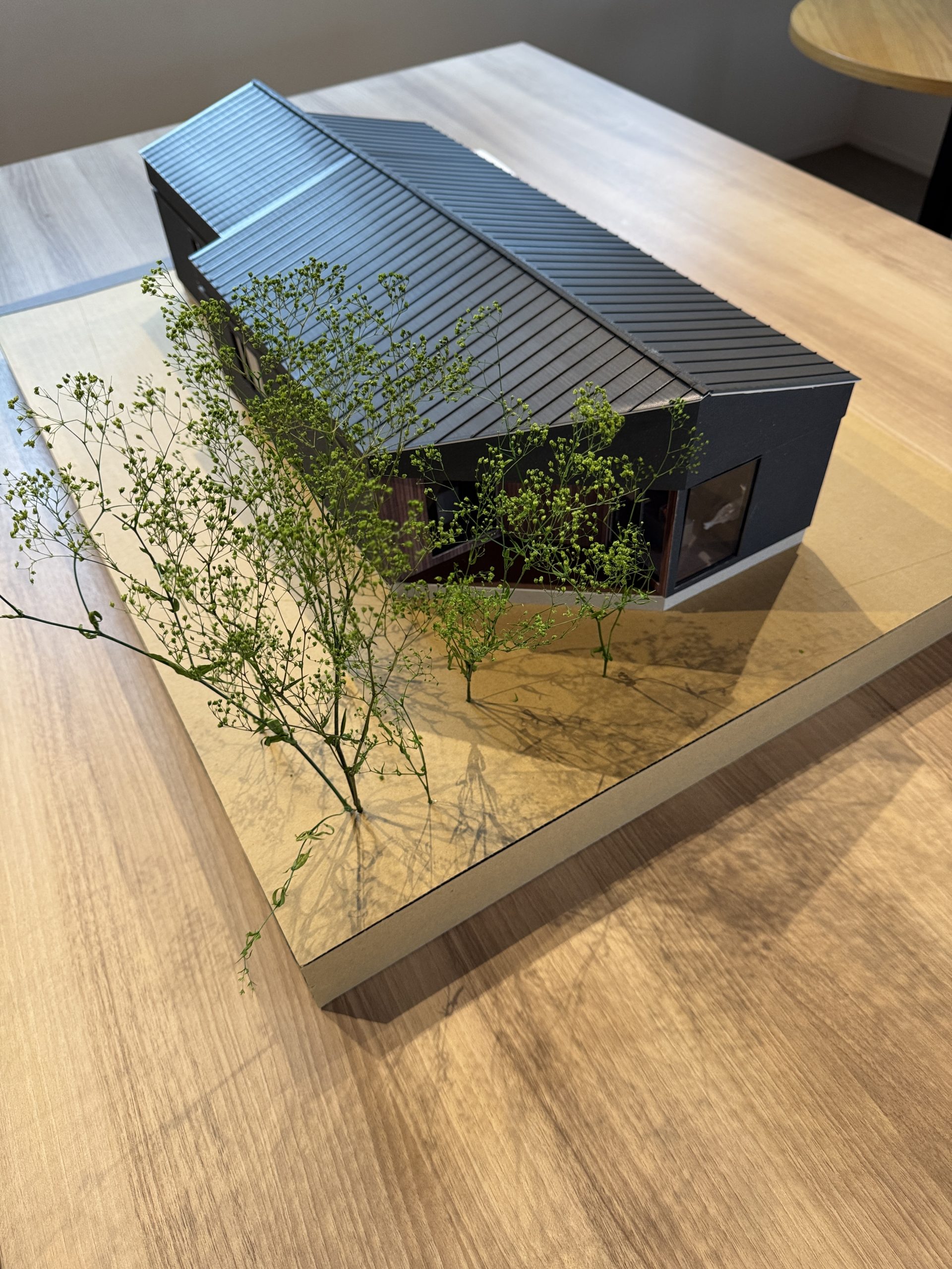 プレゼン用の模型も作成し、建物のボリューム感や配置を実際に見ながら説明することができました。